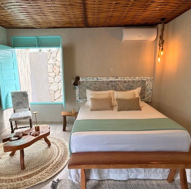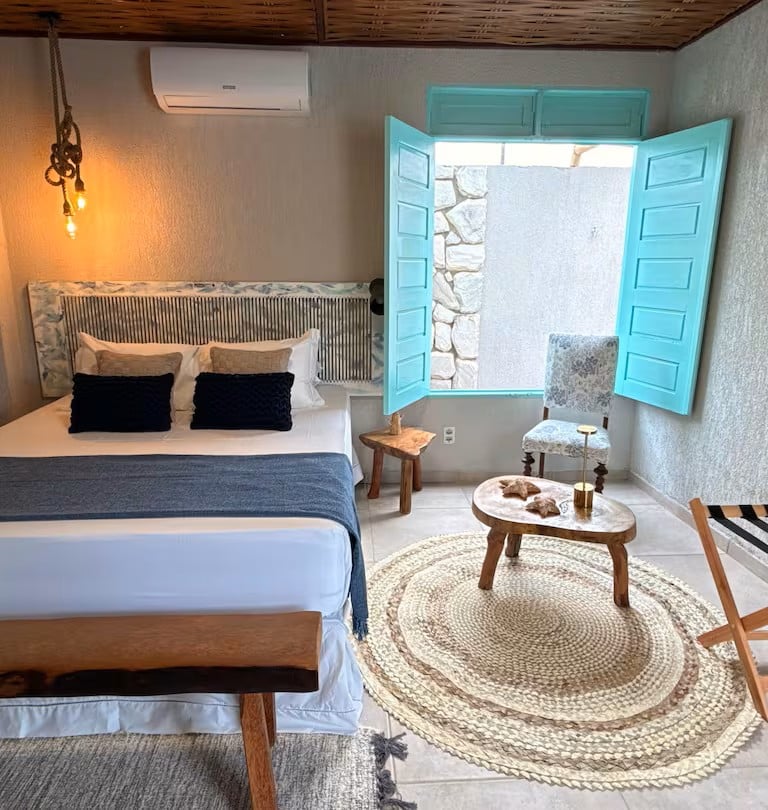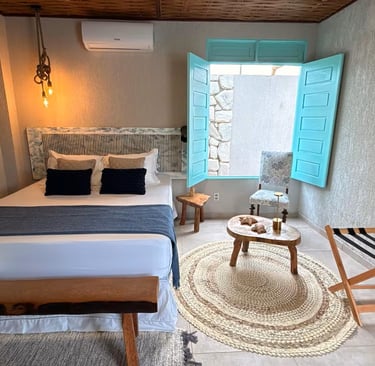Desfrute do conforto das suítes com ar-condicionado e decoração charmosa.